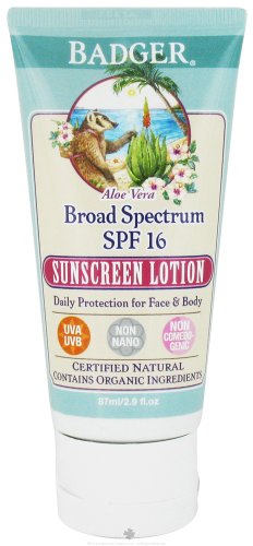 - Badger - Sunscreen - Suscreen Lotion Aloe Vera SPF 16 for Face & Body Organic UVA UVB - 2.9 fl oz.